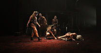 This Animal Farm is fine ensemble work, especially as some of the actors portray more than one animal, notably Sivan Mast who’s both the nervy, high-strung mare Molly and one of Napoleon’s eager, slavering attack dogs. The absolute standouts are Aviv Carmi as Napoleon and Gal Ben-Amra as the strong carthorse, Boxer. Ben-Amra’s shambling, uncomplaining, loyal – “Napoleon is always right” – and clueless Boxer is perfect. Carmi’s increasingly vicious Napoleon lets his menace show gradually. As his power grows, so does his weight, actually and politically”