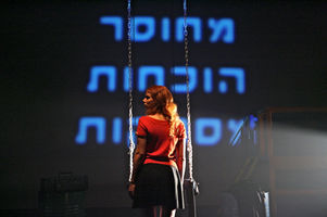 Once [The Cameri Theatre] decided to revive this play, then this young and dynamic production by director Noam Shmuel is definitely a good way of doing so. Shmuel brings to the stage an energetic style based on video clips (edited by him) and beat music (written by Oran Eldor), and mainly on the sharp and intense performance of a young, unified cast. The actors shift convincingly between the roles of the youngsters playing forbidden games in the playground (set design by Avital Lahat) and those of the lawyers who play far more “respectable”, but no less lethal games in the courtroom. At center stage stands the swing, a symbol of the childish innocence that pervades the story.
