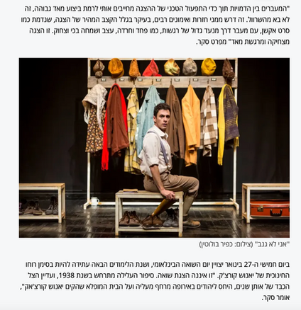 “With the help of magic that only happens in the theater… the audience feels as if they are sitting in the great hall of Korczak orphanage, taking part of Janek’s trial… I watched the play with my 12 year old son and we couldn’t stop talking about it...It is truly remarkable how a single actor is able to create and bring to life an entire world”